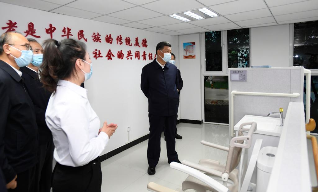 2021年8月24日,習近平總書記在河北省承德市濱河社區(qū)居家養(yǎng)老服務(wù)中心察看適老化改造等項目。新華社記者 李學仁 攝