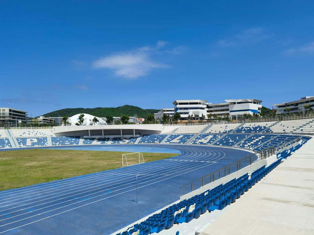 6月27日在海南陵水拍攝的國(guó)際教育創(chuàng)新試驗(yàn)區(qū)園區(qū)內(nèi)的運(yùn)動(dòng)場(chǎng)。新華社記者 劉勇貞 攝