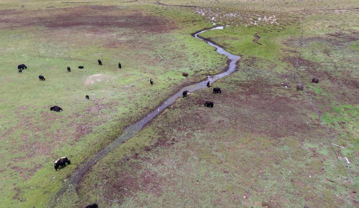 在平均海拔超4500米的長江源區(qū),牦牛、藏羊是當(dāng)?shù)啬撩袷来蕾嚨纳媮碓?。一些區(qū)域過去牛羊超載,生態(tài)惡化。