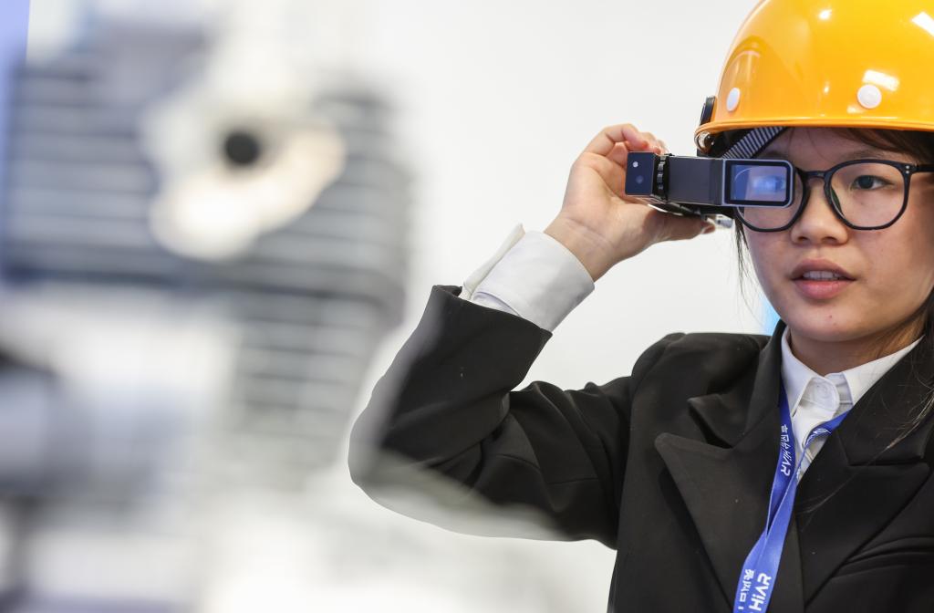 6月1日,昆山元宇宙產(chǎn)業(yè)園內(nèi)的亮風(fēng)臺(昆山)信息科技有限公司里,工作人員在演示AR智能穿戴設(shè)備賦能工業(yè)應(yīng)用的場景。新華社記者 楊磊 攝