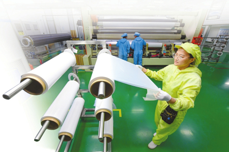“只有這樣的構(gòu)造才能在隔絕電池正負(fù)極的情況下,還能保證鋰離子從中間自由通過。可是,想在‘塑料布’上打出這種小孔可不容易?!倍跑S剛介紹,當(dāng)下無論是手機(jī)、電腦,還是新能源汽車,鋰電池早已與我們的生活息息相關(guān)。但由于鋰電池隔膜科技含量高,制造過程涉及多個(gè)學(xué)科,幾年前國內(nèi)的生產(chǎn)工藝、產(chǎn)品性能、產(chǎn)業(yè)鏈完整度都很低,隔膜等關(guān)鍵材料長期被外資壟斷。