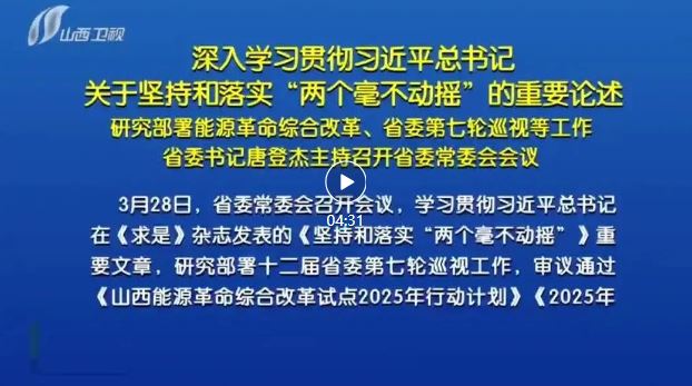 山西日報報道 3月28日,省委常委會召開會議,學(xué)習(xí)貫徹習(xí)近平總書記在《求是》雜志發(fā)表的《堅持和落實“兩個毫不動搖”》重要文章,研究部署十二屆省委第七輪巡視工作,審議通過《山西能源革命綜合改革試點2025年行動計劃》《2025年省委黨內(nèi)法規(guī)制定計劃》。省委書記唐登杰主持會議。