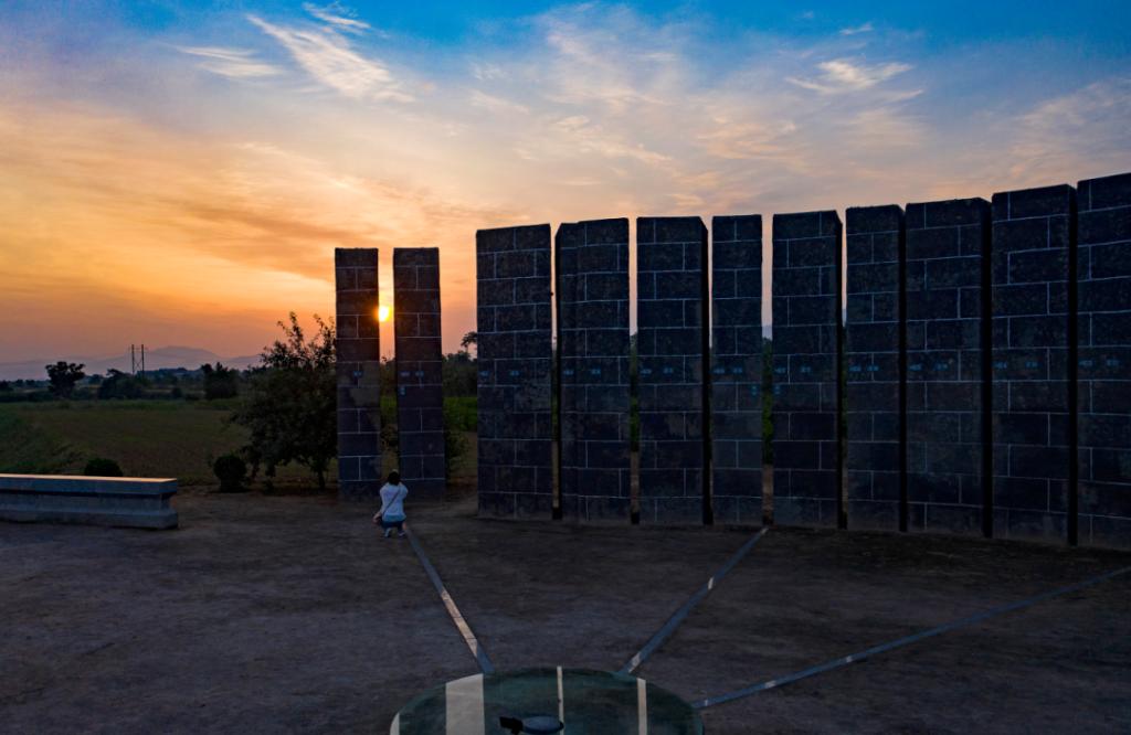 ▲2023年6月21日,人們?cè)谂R汾市襄汾縣陶寺遺址觀象臺(tái)觀看日出天文景象。當(dāng)日是二十四節(jié)氣“夏至”,在山西省臨汾市襄汾縣陶寺遺址觀象臺(tái),人們近距離體驗(yàn)“太陽(yáng)-觀測(cè)縫-觀測(cè)點(diǎn)”之間形成的三點(diǎn)一線天象奇觀,了解古代確定季節(jié)、節(jié)氣,安排農(nóng)耕的天文歷法。陶寺古觀象臺(tái)距今約4700年,是陶寺遺址考古中的重大發(fā)現(xiàn)。李現(xiàn)俊攝
