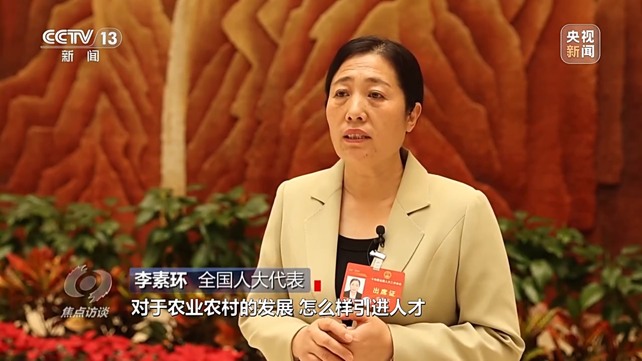 全國(guó)人大代表 李素環(huán):總書記非常關(guān)注農(nóng)村農(nóng)業(yè)的發(fā)展,對(duì)于農(nóng)業(yè)農(nóng)村的發(fā)展,怎么樣引進(jìn)人才作出很多部署。人才引進(jìn)機(jī)制不斷完善,會(huì)有一大批人才到農(nóng)村里去,愛上農(nóng)村,我相信到那時(shí)候我們農(nóng)村會(huì)是一幅很美麗的畫卷。