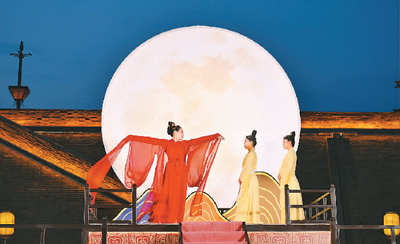忻州古城北廣場的舞臺(tái)劇《貂蟬拜月》。王笑宇攝