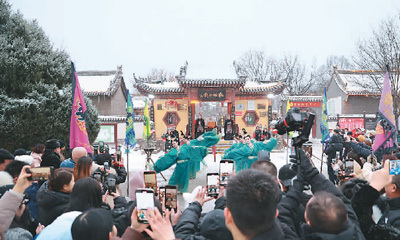 忻州古城南城門前的快閃表演。石薦文攝
