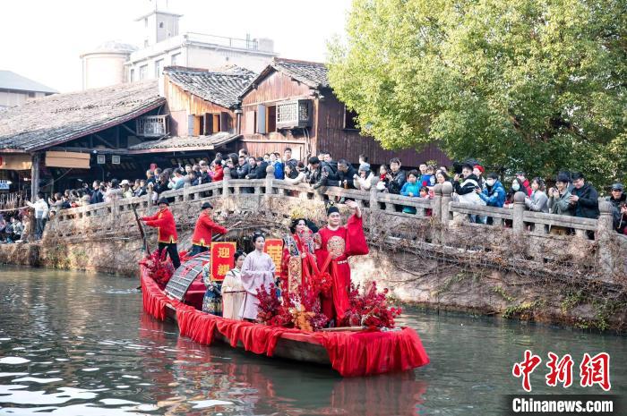 圖為浙江紹興安昌古鎮(zhèn)的水上婚禮。強(qiáng)歌 攝
