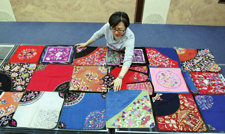 高寧收藏了很多山西各地的肚兜,精美的圖案展現(xiàn)了山西刺繡的魅力。 山西晚報記者 武六紅 攝