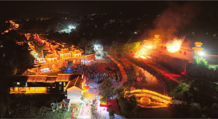 夜幕降臨,火花四濺,光影交錯,在裸眼3D技術(shù)打造的場景藝術(shù)下,一場《如愿大陽》實(shí)景戲劇悄然登場,婉轉(zhuǎn)的音樂和動人的故事仿若解讀著千年大陽鐵文化,讓游人懷揣著對歷史文化的探尋,沉浸式走進(jìn)這千年古鎮(zhèn),一睹往日恢宏……
