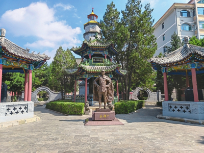 穿過大門,一座約3米高的古銅色左權將軍塑像巍然屹立。將軍身披軍大衣,目光堅定地望向遠方,仿佛仍在守護這片曾經(jīng)戰(zhàn)斗過的土地。塑像后方,蒼松翠柏掩映著亭臺廊廡,肅穆之感油然而生。