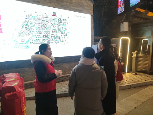 在涌動的人流中,一抹“志愿紅”格外醒目。在古城的各個區(qū)域,法院干警身著統(tǒng)一的服裝,熱情地為游客拍照、打卡、掃碼,宣傳介紹古城的旅游景點,還為游客提供路線指引、問題解答、失物協(xié)尋等幫助,古城內(nèi)隨處可見他們忙碌的身影。