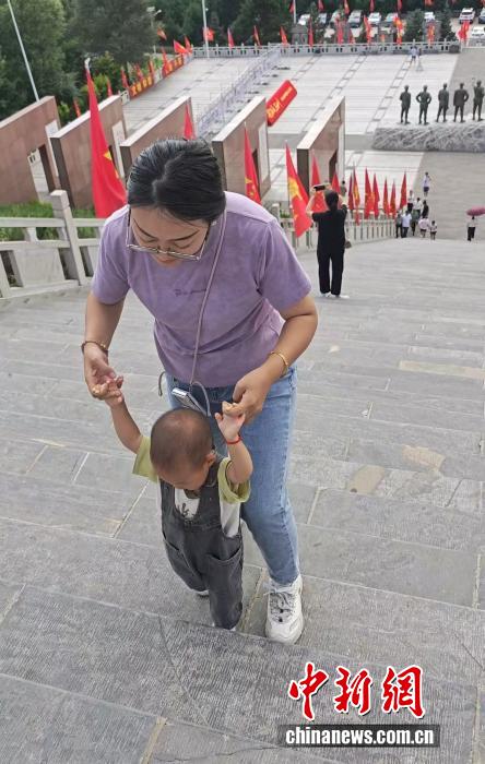 蹣跚學(xué)步的孩子正在攀爬象征紀(jì)念115師的115級(jí)臺(tái)階。 記者 郎朗 攝